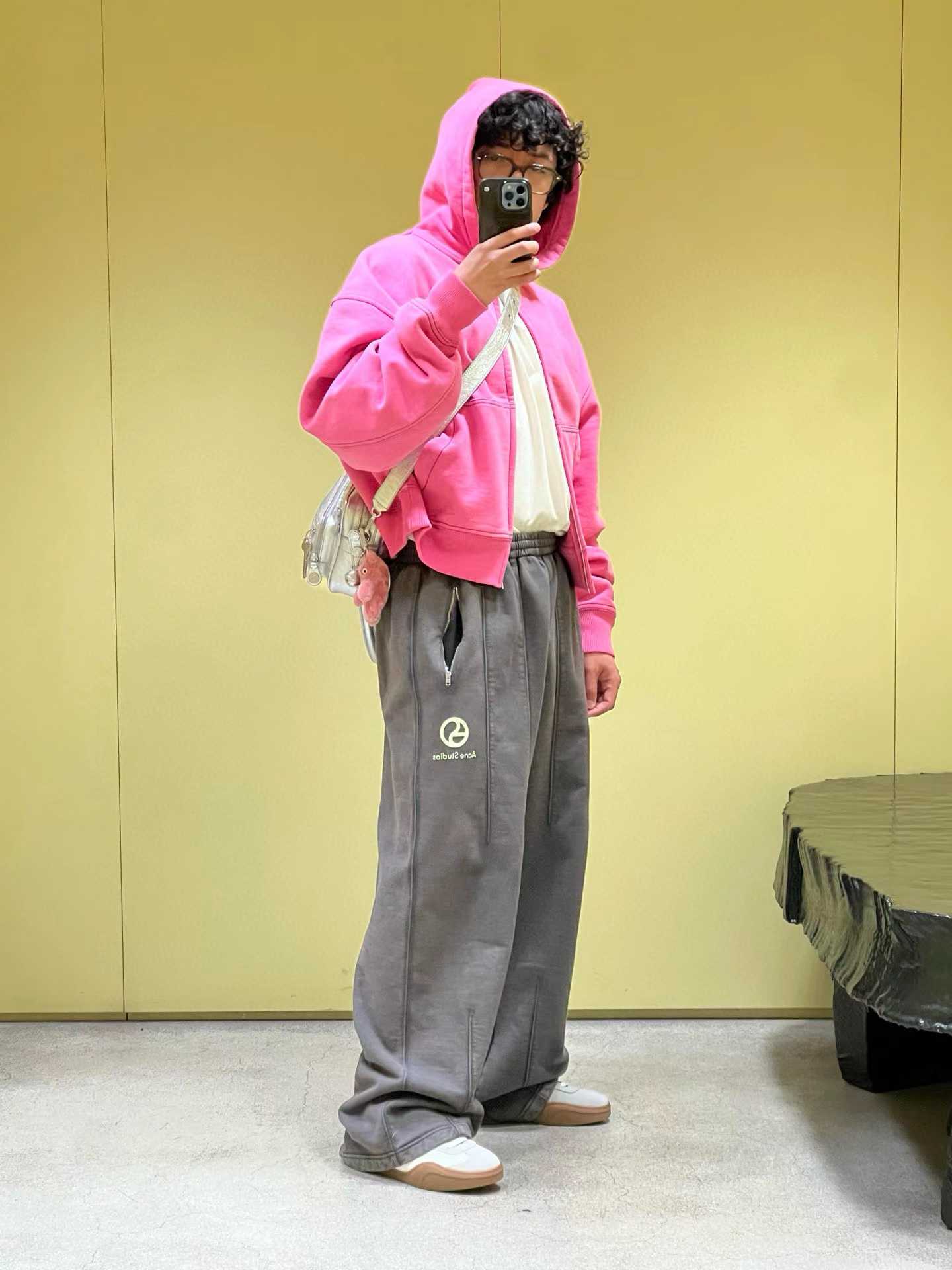 아크네 2026 라운드로고 지퍼 패턴 스웻 팬츠 바지