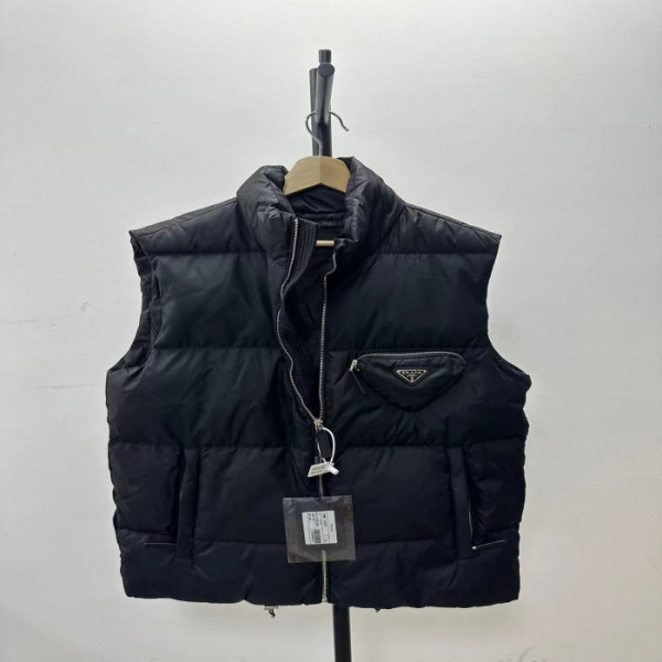 프라다 2023 트라이앵글 포켓 다운 패딩 조끼 베스트 자켓 실사